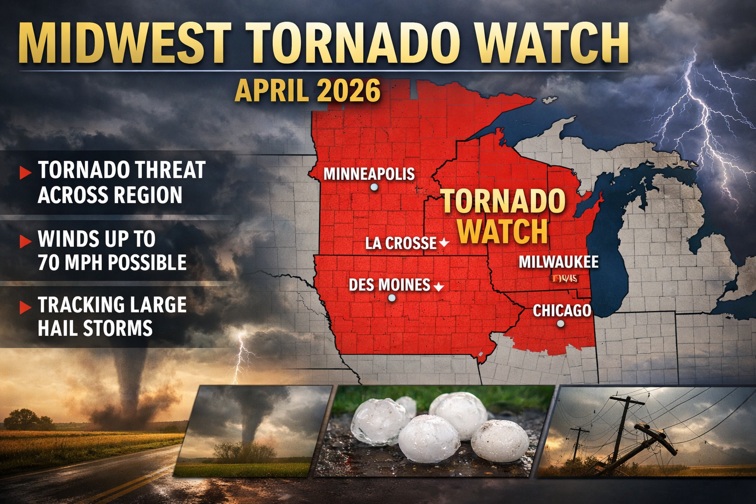 This Midwest tornado watch April 2026 signals a volatile spring severe weather pattern across the Upper Midwest affecting transport and agriculture affecting transport and agriculture.